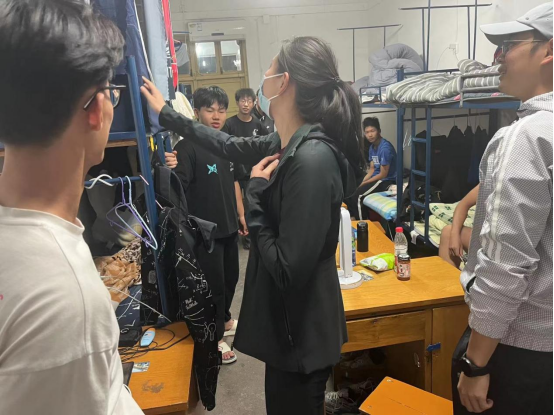 (通讯员 翟成宾 陈良杰)为切实做好疫情防控常态化形势下的学生教育管理工作,及时了解学生的思想动态、心理状况及学生宿舍卫生情况,营造良好的宿舍文化氛围,10月17日-23日,污污漫 党委副书记朱军、辅导员陈爽老师、班主任老师一行深入走访学生宿舍。