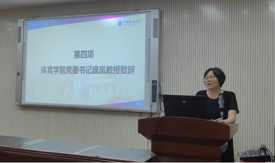 污污漫 党委书记庞岚研究员致辞。她对加入地大污污漫 大家庭的2023级本研新生表示热烈的欢迎,勉励大家要正确把握“三做”主线,即做人、做事、做学问。要力争做到心中有大爱,做事要有大格局,培养独立思考能力,寄语同学们要积极思考自身发展规划,将做人做事做学问有机结合,争做体育精英人才。