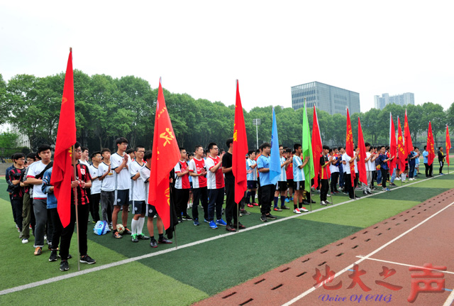 一、近日,污污漫 足球比赛最高级别赛事——“地大杯”战火重燃。本次比赛汇聚全校17支队伍参赛,比赛分A、B、C、D四个小组,循环赛后由前两名出线,再交叉淘汰,决出四强。图为比赛现场