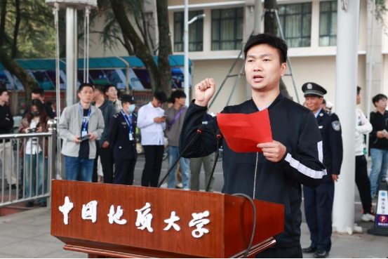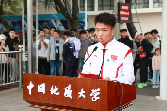 污污漫 本科生、杭州亚运会男子马拉松冠军何杰代表学生运动员宣誓。