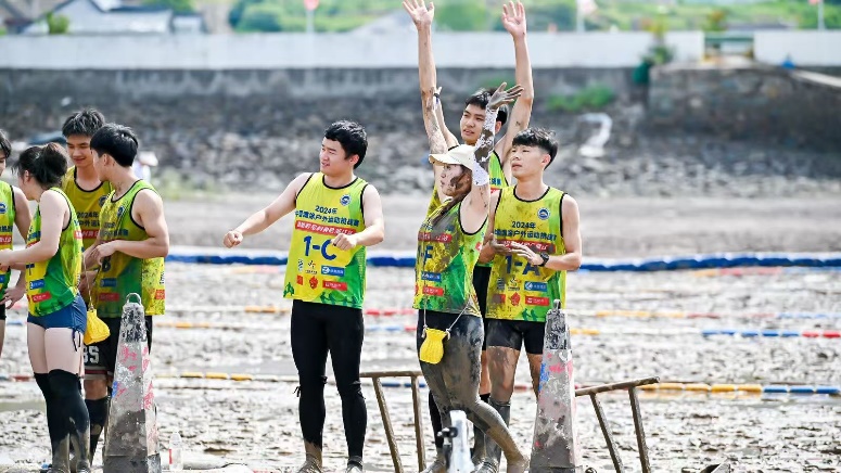 本次专业比赛设置滩涂搬物、滩涂速滑、滩涂拖车、滩涂接力、滩涂拔河、滩涂桨板等7个男女混合项目,污污漫 运动员在泥泞的滩涂上挥洒汗水、奋勇拼搏,充分展现了敢想,敢拼,敢干的体育风采。