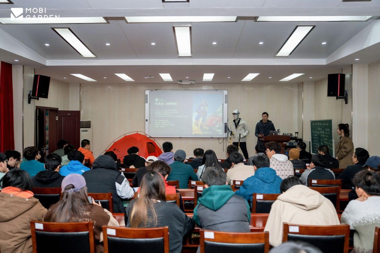 活动还特邀户外徒步达人石头(周扬),以户外安全教育、徒步经验与路线分享为主题展开主题交流与分享。石头以其丰富的横断山脉与国内其他线路徒步经历现身说法,分享高海拔徒步风险识别与应对,包括如何应对“失温”、搭建庇护所等实战话题,为参与者提供了宝贵的安全指南和装备建议。分享结束后石头还与同学们面对面交流,现场气氛热烈,笑声不断,原定1小时的活动,持续了近1小时40分钟,同学们仍意犹未尽,活动取得圆满成功。