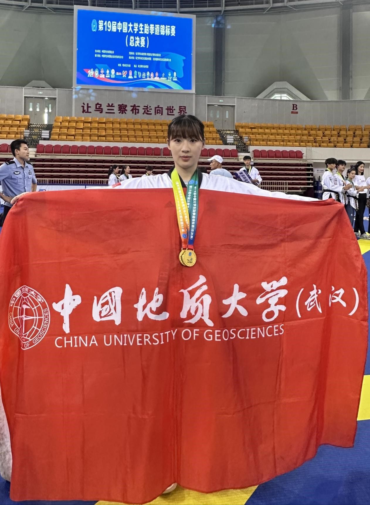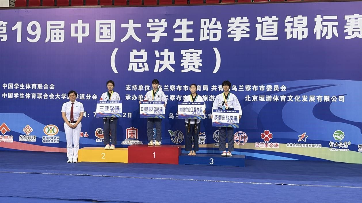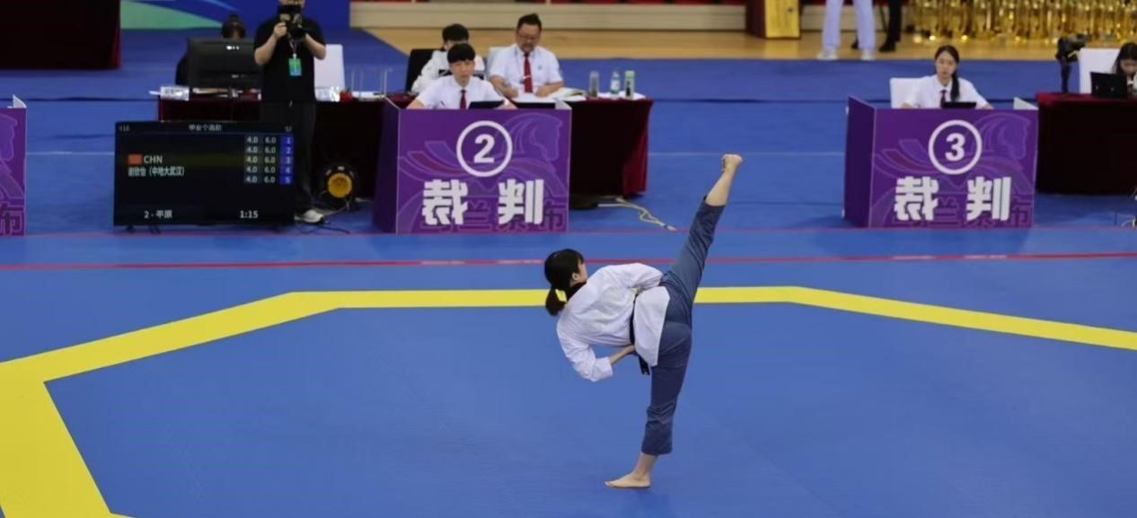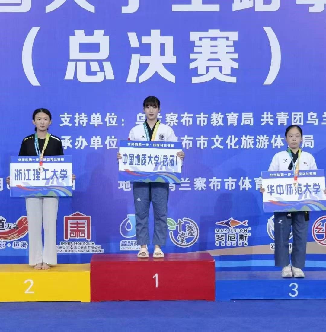 7月6日至11日,第19届中国大学生跆拳道锦标赛(总决赛)在内蒙古乌兰察布市体育馆举行,本次比赛由中国学生体育联合会主办,中国学生体育联合会大学跆拳道分会执行,共有来自全国155所高校的1090名运动员、教练员参赛。污污漫 跆拳道队谢欣怡同学参加了甲组女子个人高阶品势和甲组女子个人段位品势两个项目的比赛。
