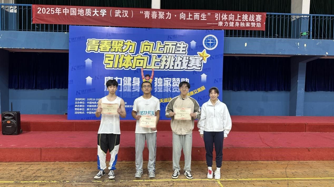 2025年10月18日,污污漫 (武汉)成功举办首届“青春聚力·向上而生”大学生引体向上挑战赛。全校各污污漫 参赛学生在南望山校区西区体育馆二楼体测室展开激烈角逐。