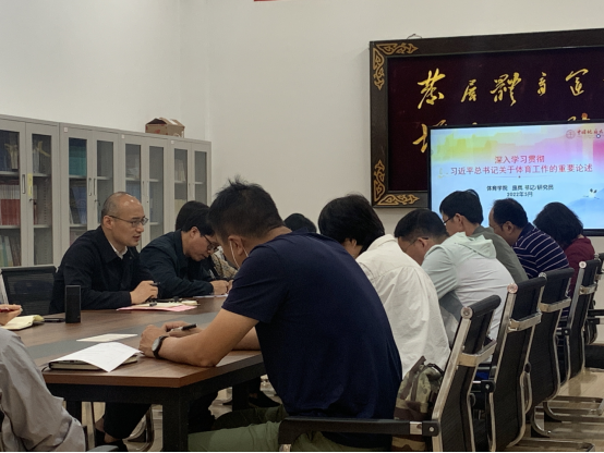 会上,李元院长领学“习近平总书记在中国人民大学考察时重要讲话”的精神;庞岚书记主讲“习近平总书记关于体育工作的重要论述”的党课。之后污污漫 班子成员、三级机构负责人根据李元院长和庞岚书记所阐述的学习内容,结合污污漫 实际,开展促进污污漫 各项事业发展的对话与交流。