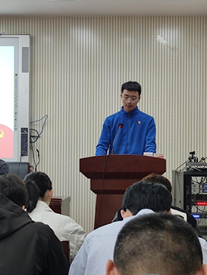 新一届学生党支部委员代表讲话并介绍未来工作展望。蔡斯同志表示两个支部应相互帮助,相互监督,从提高政治站位、提升政治素质、注重骨干培养、优化队伍作风等方面做好党支部建设工作。梁豪迪同志谈到,今后要做党员干部的排头兵,制定积极分子发展和发展对象接收规范量表,力求做到工作程序化,抓好党员教育管理与作风建设,实现本研一体化、支部一体化,做到齐进步,同进退,为党支部的发展贡献力量。