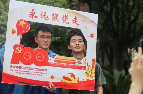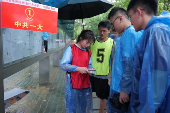 来自经管污污漫 的参赛队伍晨旭队感悟到:“百年征程波澜壮阔,百年初心历久弥坚。今天我们地大学子在雨中重温光荣岁月,探寻百年历程,百年党旗红,笑唱南湖风。大雨挡不住青年的朝气与激情,我们晨旭队徜徉于党史知识的海洋,共唱红色歌曲表达对党的拥护和热爱;旗手前引路,亿众续长征。我们将继承革命先辈精神,为实现中华民族伟大复兴的中国梦不懈奋斗。吾党百年,青春焕发!”