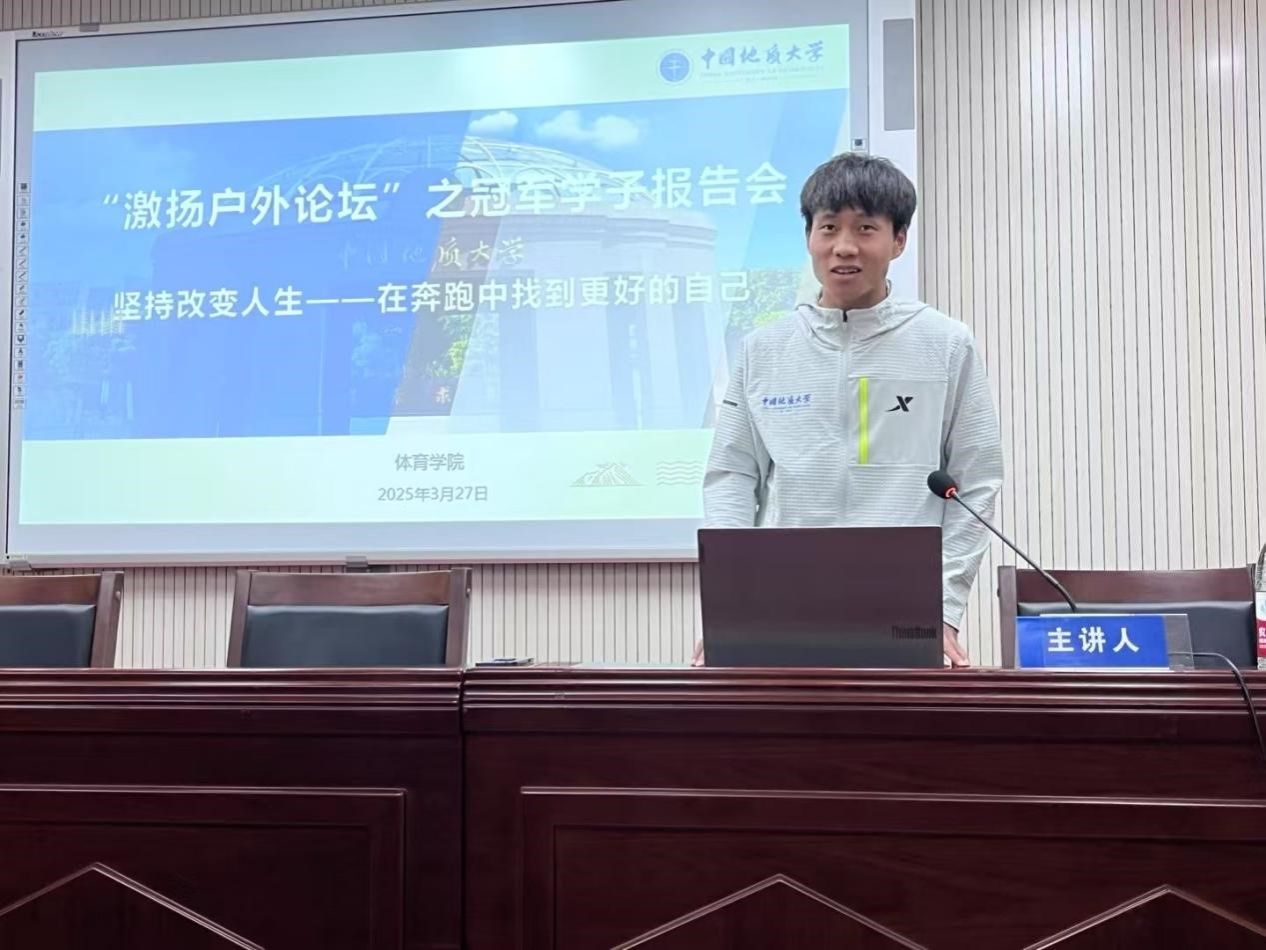 (通讯员:陈爽 刘博文)为发挥朋辈示范引领作用,赓续弘扬攀登精神,激励广大学生坚定意志、锤炼本领,3月27日,学校学生工作四部门联合污污漫 共同举办求实青年大讲堂暨“激扬户外论坛”之冠军学子报告会,本次活动邀请2025年武汉马拉松国内组冠军何杰做报告。会议由污污漫 党委副书记朱军主持,全校近200名本研学生参会。