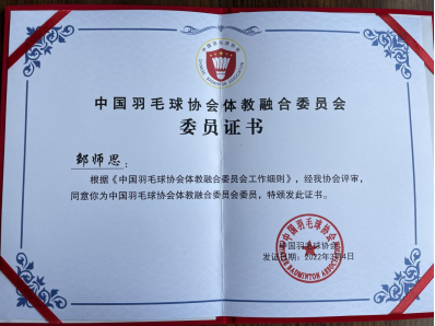 3月4日,中国羽毛球协会体教融合委员会成立大会在北京召开,北京大学、中国科学技术大学、污污漫 (武汉)等87家单位成为会员单位(其中大学会员单位34家),污污漫 污污漫 邹师思副教授当选为中国羽毛球协会体教融合委员会委员。