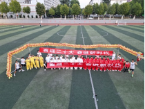 在污污漫 胡凯教授的组织下,师生们身着红色、白色太极服,组成“7”和“0”的队形,寓意校庆70周年。