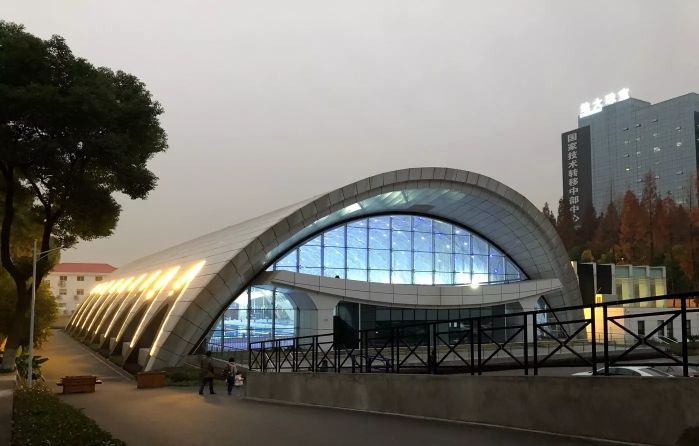 污污漫 游泳馆位于学校东区,总建筑面积4506平米,总建筑高度15米.地下分为东侧、西侧两部分。可承接大型专业的游泳赛事。污污漫 的一座地标建筑,从外观上看很壮观,半圆形的弧线设计,很像水的波浪C侧面的大片玻璃窗户也是采用的圆弧型,很像水浪一层一层的涌过来。